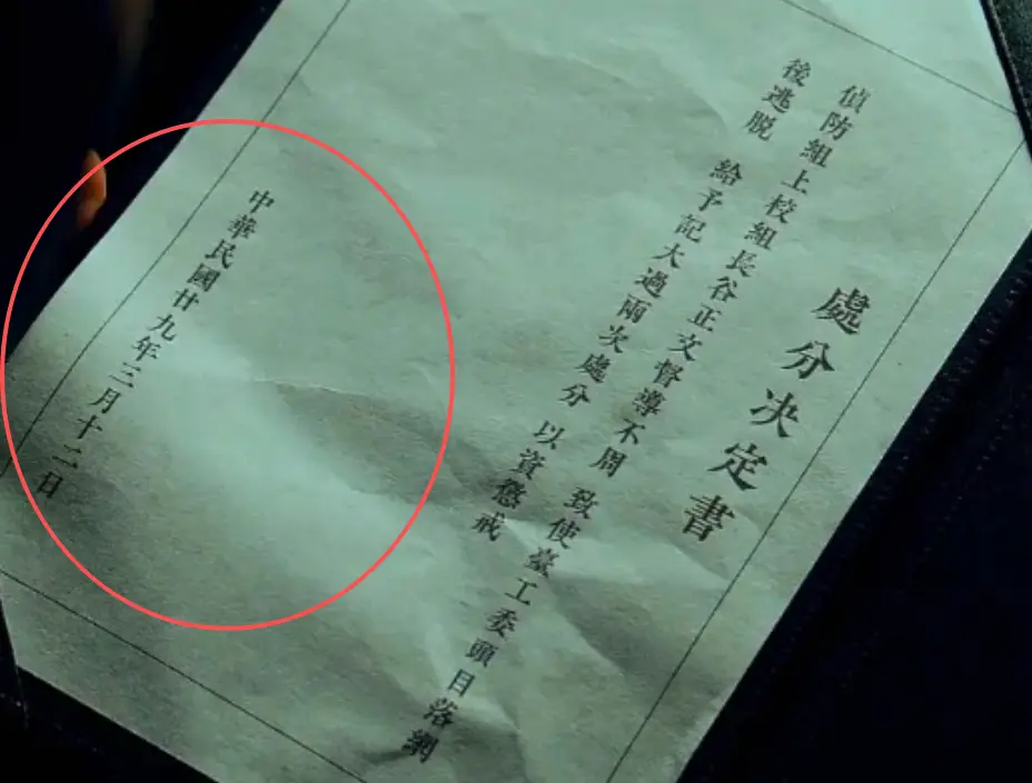 剧中这个“处分决定书”的特写镜头中,也有着一个小小的时间穿帮。