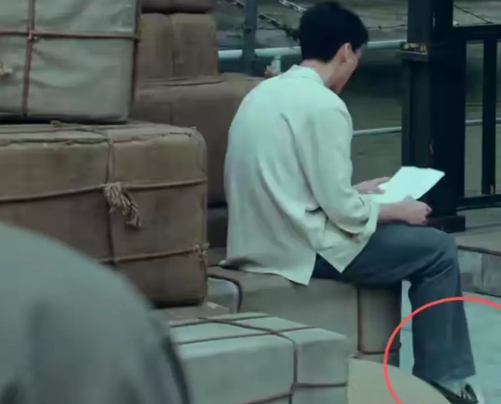 虽然那个时期布鞋并不吸取,可这种样式还是有些太超前了吧,怕不是演员在拍戏时,直接穿上了自己的鞋子吧。