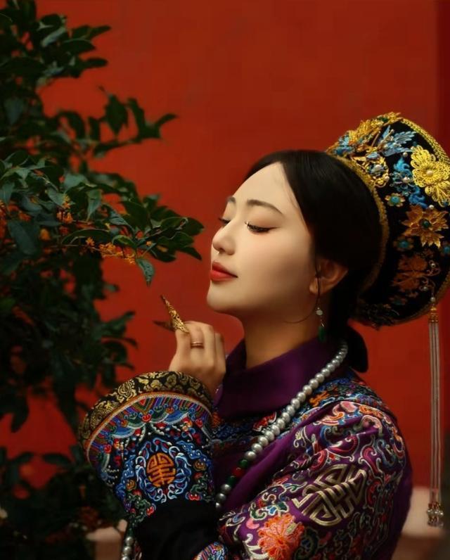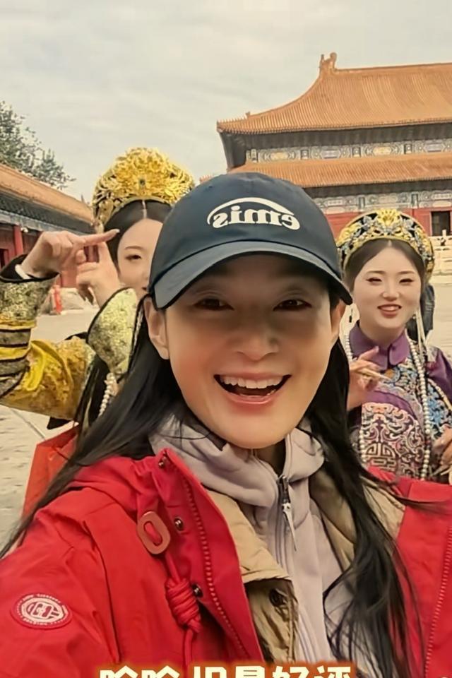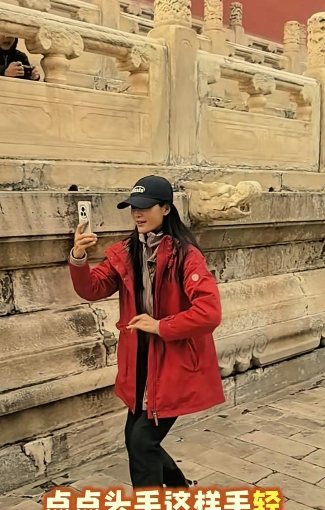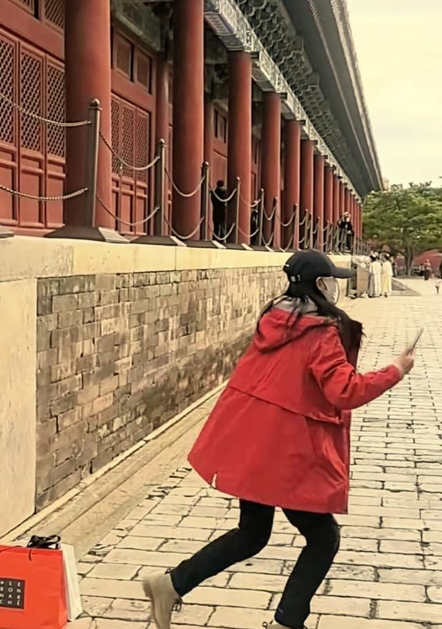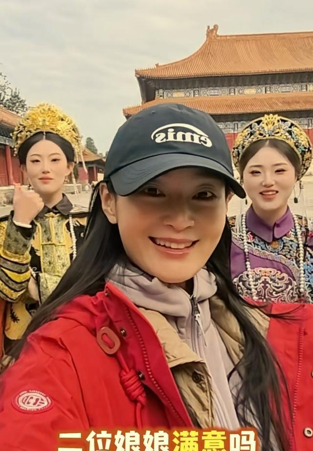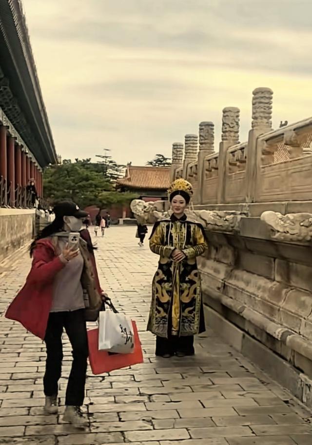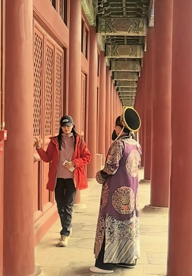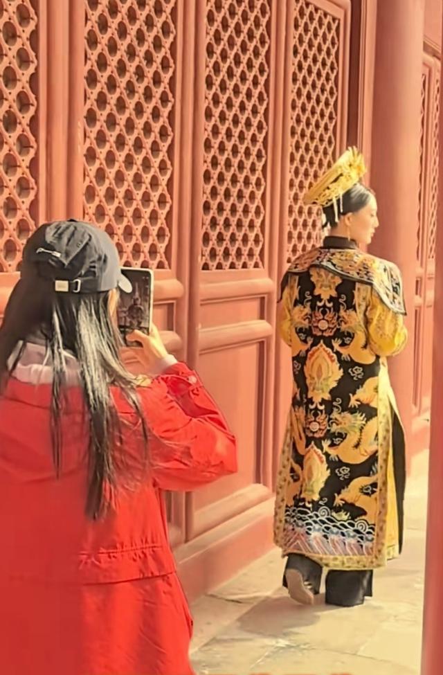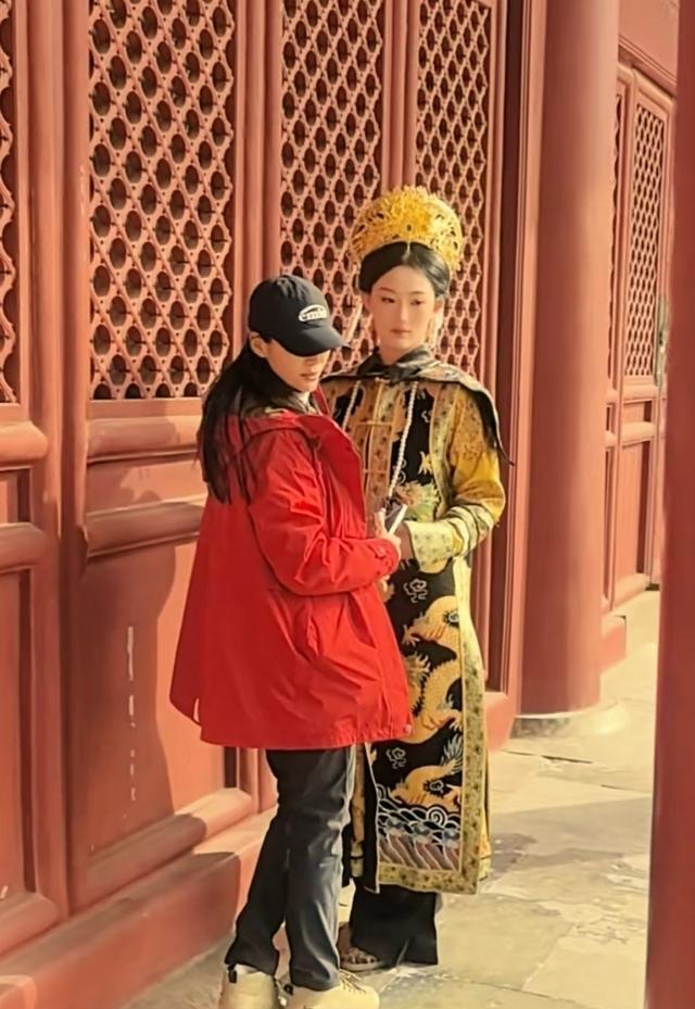 二表妹选了一身紫色的古装,王媛可指导她在廊下红色木门前拍照,她似乎提取了自己当年演纯妃的专业演技,给二表妹示范如何轻抚木门、低眉浅笑。